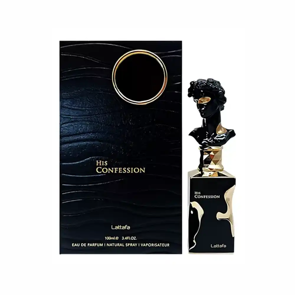 His Confession de Lattafa Perfumes es una fragancia de la familia olfativa Oriental Amaderada para Hombres. Esta fragrancia es nueva. His Confession se lanzó en 2024. Las Notas de Salida son canela, lavanda y mandarina; las Notas de Corazón son iris, benjuí, ciprés y Mahonial; las Notas de Fondo son vainilla, haba tonka, ámbar, incienso, cedro y pachulí.
