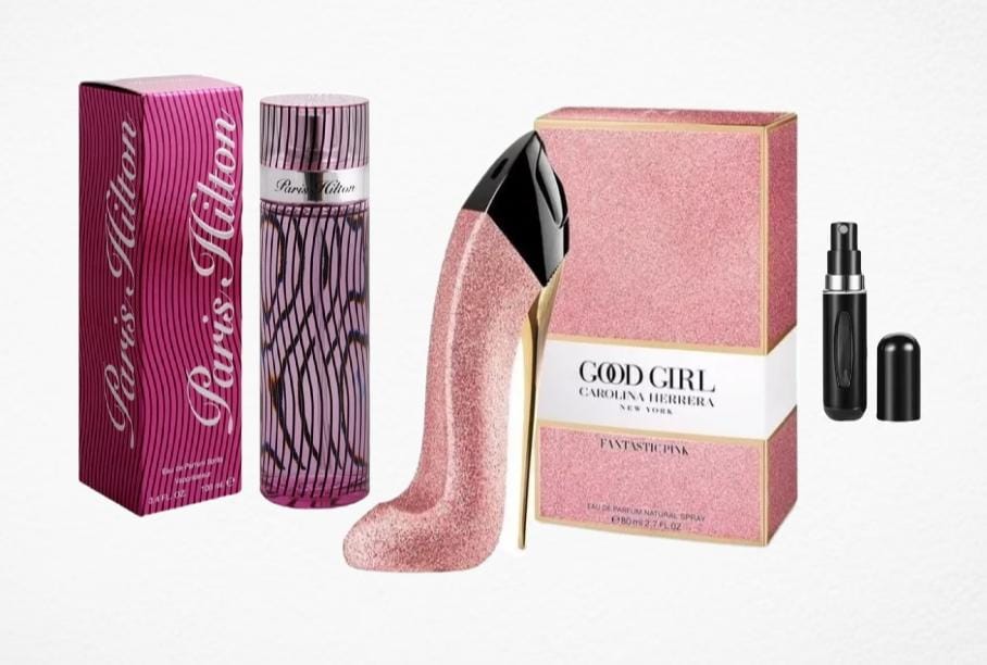 2 PERFUMES GOOD GIRL PINK 90 ML PARIS HILTON 100 ML MAS PERFUMERO RECARGABLE